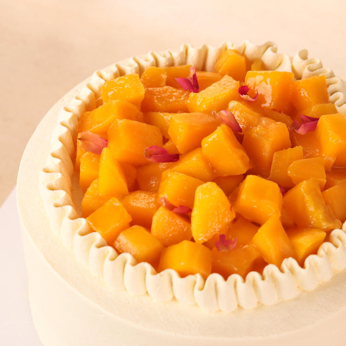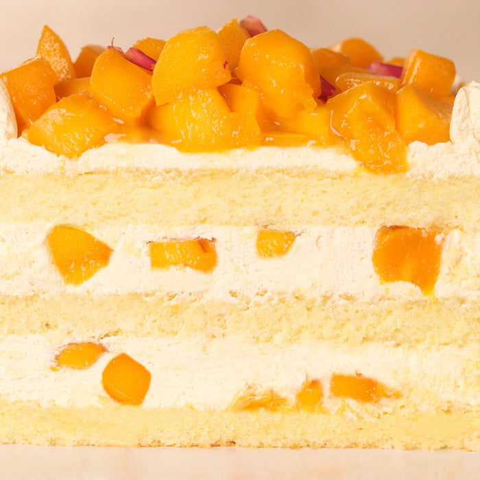 Naturally sweet with the bright, fragrant flavor of ripe mangoes. The tropical fruitiness is enhanced with lemon for contrast, and the cream layers add a light, creamy richness that complements the sponge perfectly.