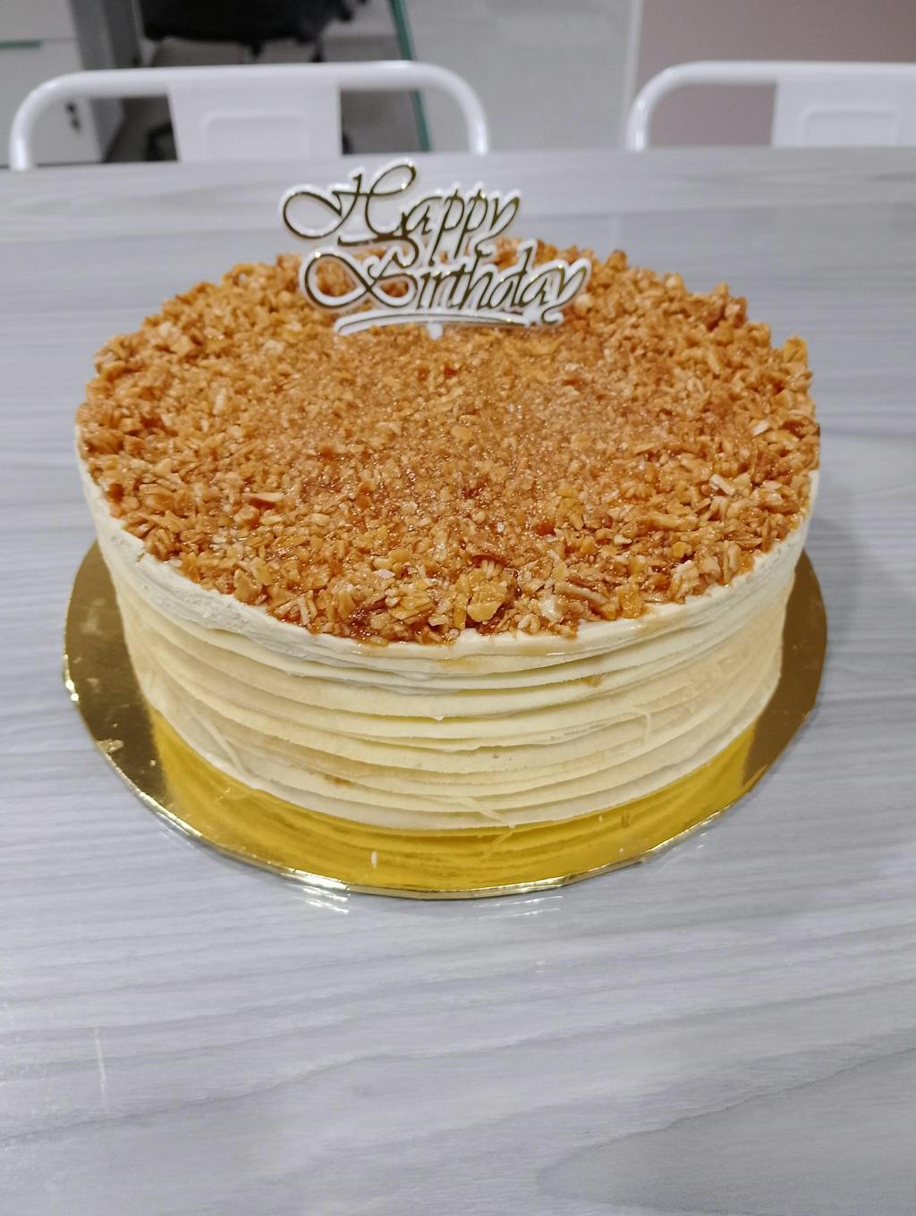 Ordered the Almond Salted Caramel Mille Crepe Cake for an office birthday celebration, and I'm so happy to hear that everyone compliment the cake. Everyone was asking where I bought it from and keep saying it tastes great! Will repeat my orders again in the future! ❤️ Thank you!
