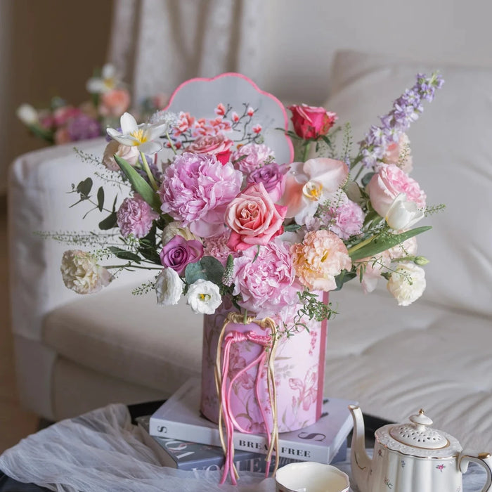 华吧推出爱之花瓣母亲节花盒,优雅与爱意和谐融合。这款精美的盒子里盛开着淡粉色的精致牡丹,是对您对母亲的爱和钦佩的热烈赞美。这款精美的盒子装在一个装饰着粉红色的迷人盒子里,是您在母亲节表达爱意的完美方式。